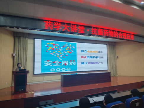 讲座中,唐敏芳以《抗菌药物的合理应用》为题,结合生动形象的案例,从细菌耐药现状、抗菌药物简介、抗菌药物管理政策法规和抗菌药物的合理用药原则四个方面介绍了抗菌药物合理应用相关知识,让师生真正体会到“药”的奥秘。