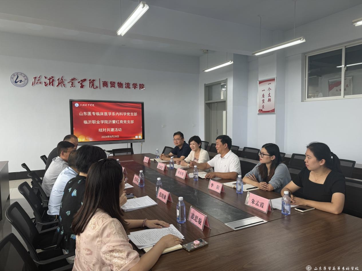 座谈会上,商贸物流学院党总支书记张洪忠介绍了学院党建发展基本情况,沂蒙红商党支部书记孟琦分享了样板支部申报与创建经验及党建特色,学生党支部书记张晓琳分享标杆系部的建设经验,财智先锋党支部书记顾长青介绍了近年学院党建发展历程。双方就党建工作样板支部申报与建设、党建工作示范引领作用发挥、党建与事业发展深度融合等进行探讨。座谈后,临床医学系内科学党支部与临沂职业学院沂蒙红商党支部开展了结对共建活动,先后参观了京东产业学院、万声实训中心、物流实训中心等实训场所。