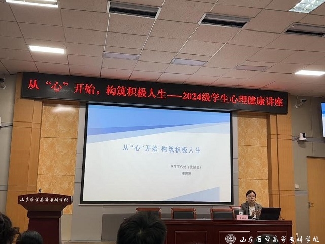 王姗姗老师以从“心”开始,构筑积极人生为主题,以新生入学的特殊时期为切入点,从自我接纳、处理人际关系、学会学习和应对挫折四个方面讲解了如何适应大学生活,保持健康心态,构筑积极人生。