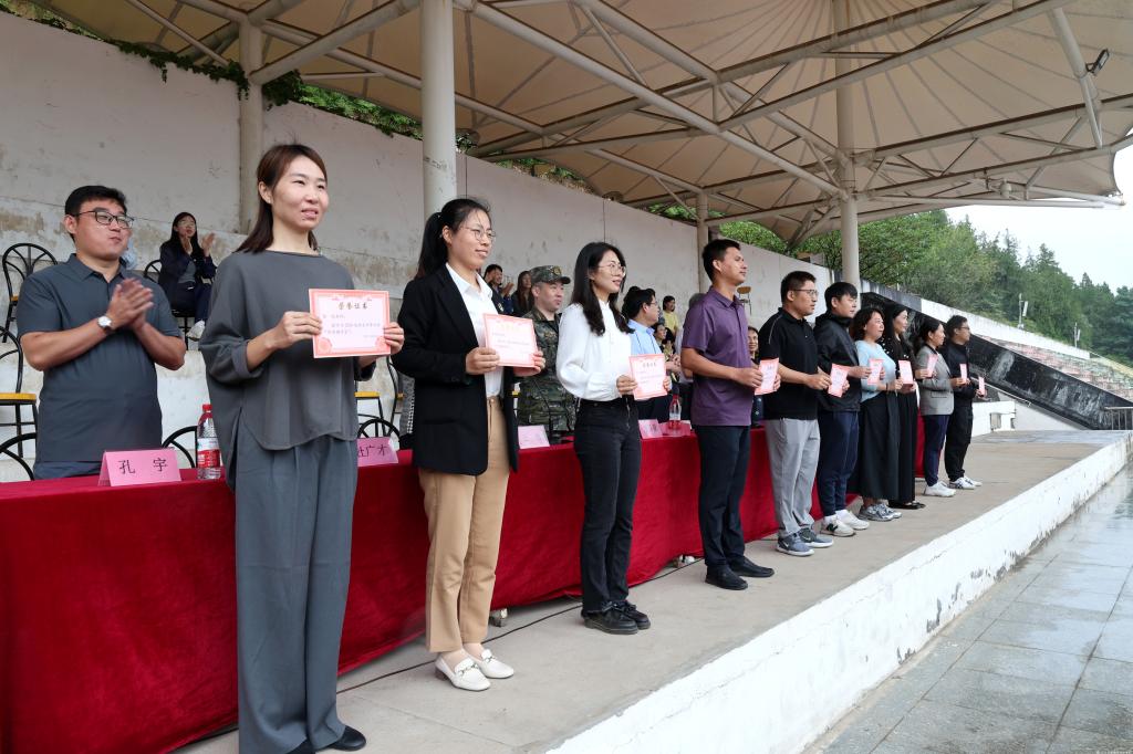 会操后,与会领导为军训中表现突出的系部、先进连队、优秀教官和辅导员颁发了so米体育app下载的荣誉证书。程智军代表学校向武警济南支队赠送了锦旗。