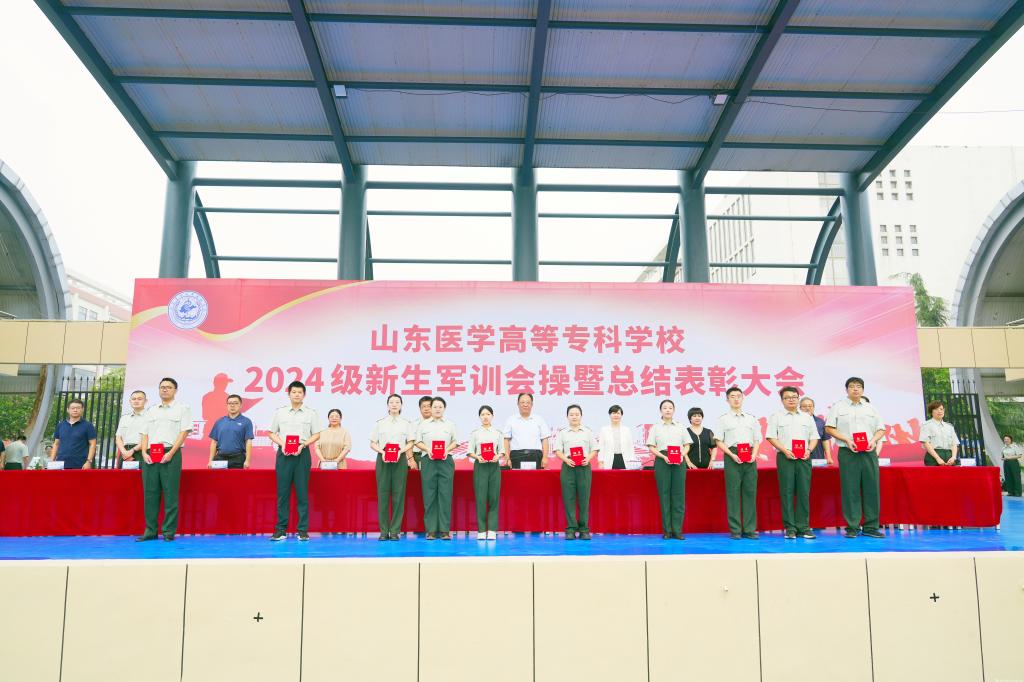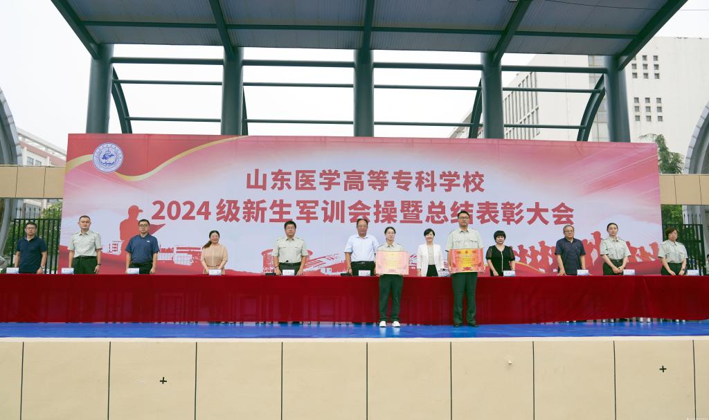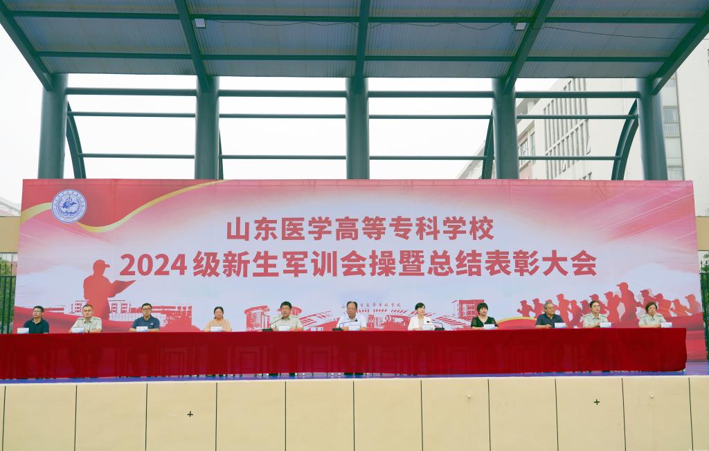 9月14日,为充分展示新生军训成果,激发爱党爱国爱军热情,山东医学高等专科学校在两校区同步举行2024级新生军训会操暨总结表彰大会。学校党委副书记高曰超,党委委员、副校长程智军、孙运粉,学校督学王尚云,武警济南支队作训科参谋郑泽夏,学生工作处(武装部)、各系部有关负责同志及全体军训教官、辅导员、2024级新生参加活动。