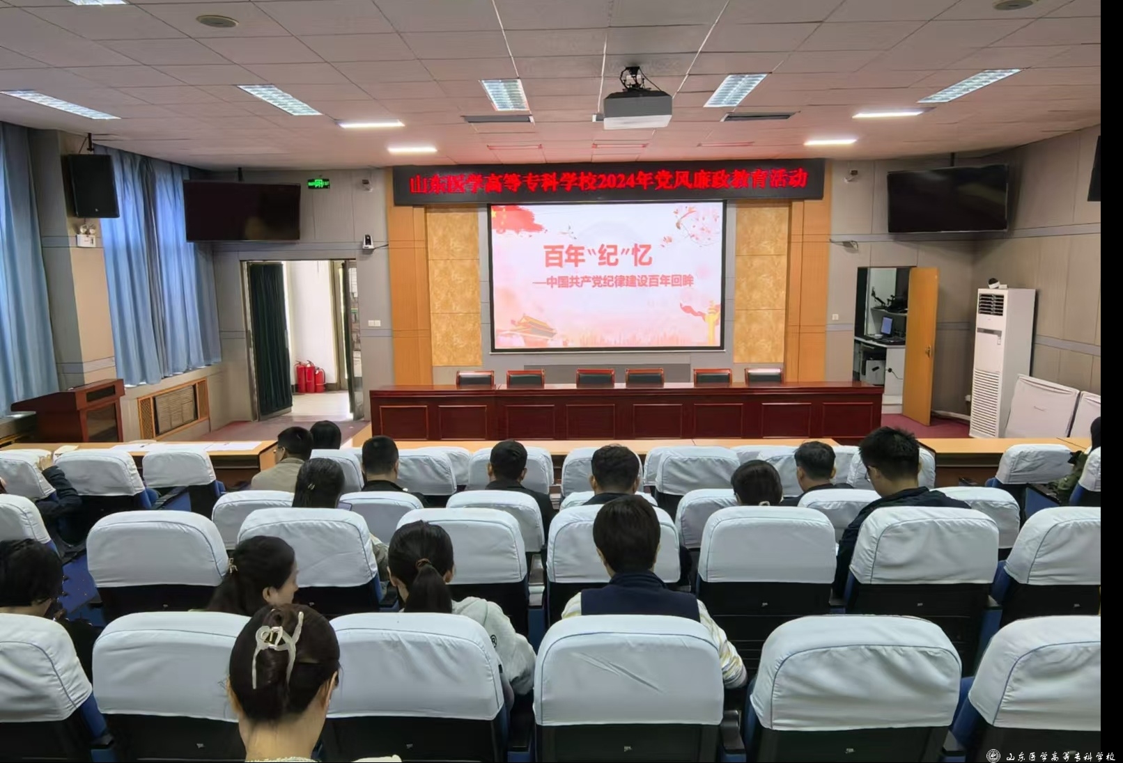10月15至16日,山东医学高等专科学校在两校区组织开展党风廉政教育活动,常态化推进党纪学习教育,进一步做好医药领域腐败问题集中整治、群众身边不正之风和腐败问题集中整治工作,夯实清廉学校建设根基。学校党委副书记、校长葛永宏及在家校领导出席活动,全体党员干部、入党积极分子、学生廉洁使者参加活动。