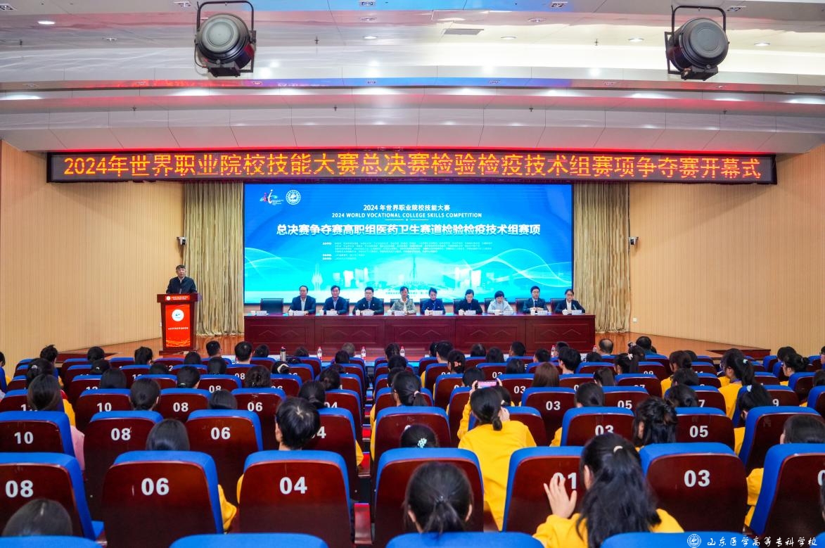 技炫青春,能创未来。10月27日,2024年世界职业院校技能大赛总决赛争夺赛高职组医药卫生赛道检验检疫技术组赛项在山东医学高等专科学校开赛。临沂市卫生健康委党组成员、副主任韦伟,临沂市教育局职业教育与成人教育科科长梁玉菡,赛事组委会副主任田清武、高春海,裁判巡视员,赛项专家裁判组、纪律监督工作组、仲裁工作组成员等出席开幕式。学校党委副书记、校长葛永宏致开幕辞,党委委员、副校长伊芃芃主持开幕式。