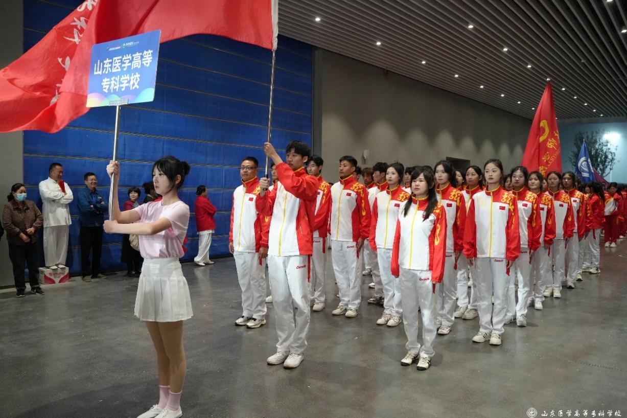 开幕式上,由我校50名师生组成的代表队高举旗帜,以矫健的步伐走过主席台,接受检阅。代表队英姿飒爽,口号嘹亮,充分展现了医专青年激情澎湃的青春风采和积极向上的精神风貌。