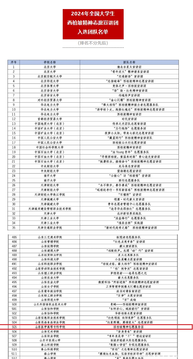 近日,团中央青年志愿者行动指导中心等部门联合发布了《2024年全国大学生西柏坡精神志愿宣讲团入选团队名单》。我校医学检验系“西柏坡精神志愿服务团”成功入选。