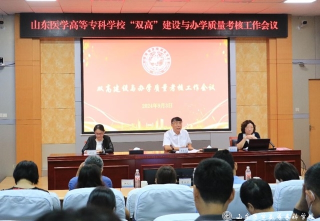 近日,为推进学校高质量发展,山东医学高等专科学校召开系列会议,对“双高”建设与办学质量考核、数据平台填报等近期教育教学重点工作进行安排部署。校长葛永宏、副校长阎希青、督学葛淑兰出席会议,重庆医药高等专科学校副校长兰作平教授受邀作讲座。会议由副校长伊芃芃主持。