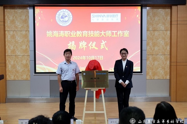 任旗和伊芃芃共同为姚海涛大师工作室揭牌。姚海涛是山东新华医疗器械股份有限公司放射诊疗事业部特级技师,全国五一劳动奖章获得者,享受国务院政府特殊津贴专家。先后获得山东省富民兴鲁劳动奖章、山东省劳动模范、齐鲁工匠、齐鲁首席技师,全国能源化学地质系统大国工匠等荣誉。作为国家级技能大师工作室领衔人,其工作室的成立将为双方在教学、科研、产教融合等方面的合作提供有力支持。