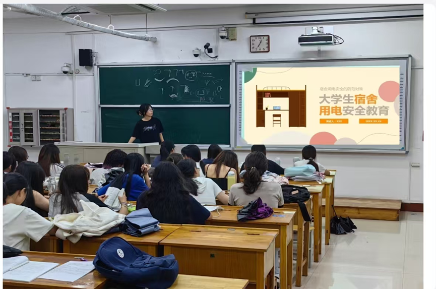 开展安全知识宣教。活动通过网络平台、主题班会等形式向广大师生普及安全知识,介绍大学生必须具备的基本消防知识及宿舍的安全用电常识,详细讲解了使用常见灭火器具扑灭初期火灾的操作要领等内容。