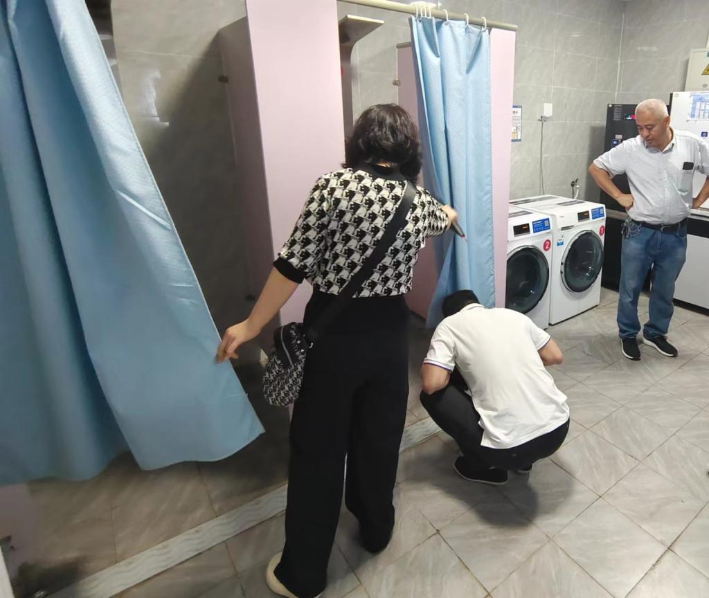 检查组实地查看学生公寓楼顶、墙体、洗浴间,针对楼顶栅栏、弱电柜、网络设备、晾衣杆、楼道灯、洗浴设施安全卫生等问题,全面、认真、细致排查安全隐患,对存在的不安全因素及时记录和整改,并对检查出来的安全隐患采取果断措施,明确专人负责、及时整改,防患于未然,有效防范校园安全事故发生。