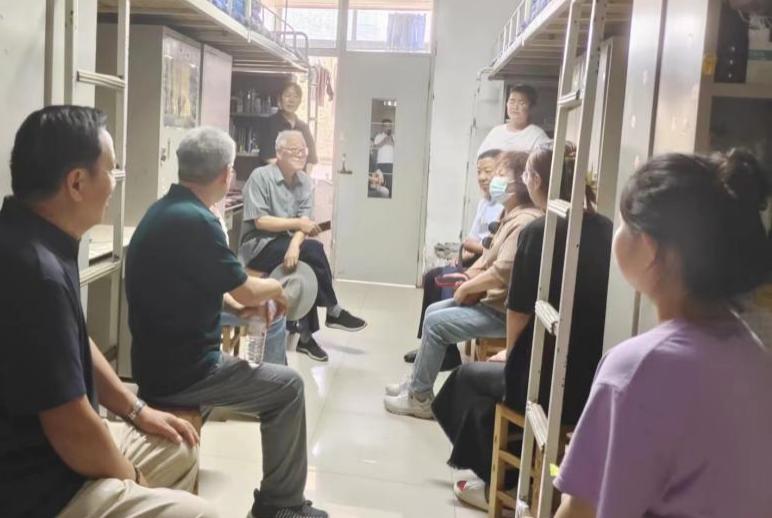 离退休党委第一、第二党支部党员同志分别走访学生宿舍,与同学们进行交流互动,分享经历。宿舍座谈过程中,退休教师关怀学生生活,关心学生身心健康,了解住宿情况,细心叮嘱同学们平时一定勤打扫、勤通风,注意个人卫生,养成良好行为习惯。其次,要求同学们牢固树立防患于未然的思想意识,自觉遵守学校各项安全管理制度。最后,老教师们结合自身学习、工作、科研经历,勉励学生努力学习,夯实专业基础,在奋斗中实现青春梦想。