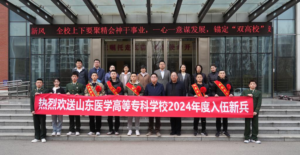 3月13日,山东医学高等专科学校举行2024年春季入伍新兵欢送会,为即将踏入军营的5名大学生新兵送行,勉励他们早建军功。学校党委书记舒德峰出席会议并讲话,党委副书记高曰超主持会议。