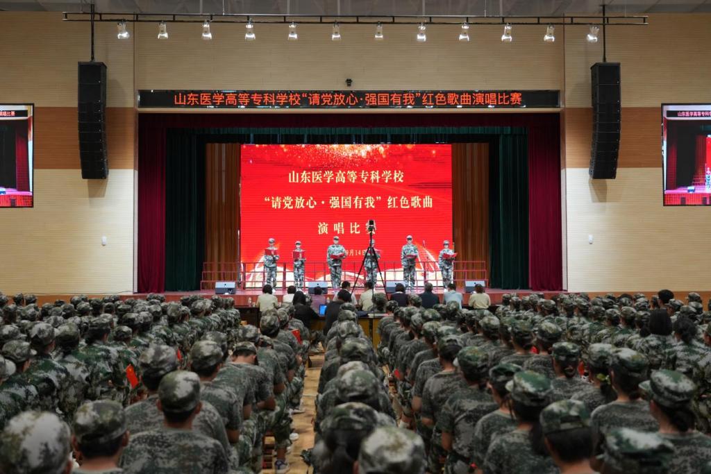 为激发爱国热情,增强国防观念,丰富军训活动,9月14日,我校在体育馆举办“请党放心·强国有我”红色歌曲演唱比赛。