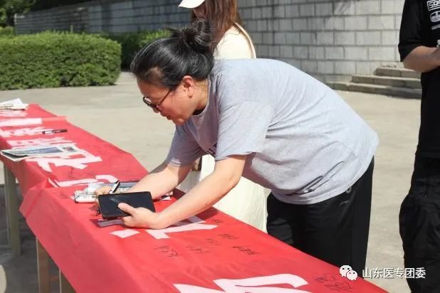 同学们就本次活动主题进行了讨论,并讲述了绿色校园建设在当今时代的重要意义,倡议全校师生树立绿色低碳生活方式,从身边小事做起,做中华民族传统美德的传承者和绿色校园建设的实践者。随后老师和同学们在活动横幅上进行签名,一言一行皆是承诺,一笔一画谱出乐章,学生们在“守护一方净土,创建绿色校园”横幅上签下自己的名字,共同守护学校一片红绿,撑起校园一片蓝天。